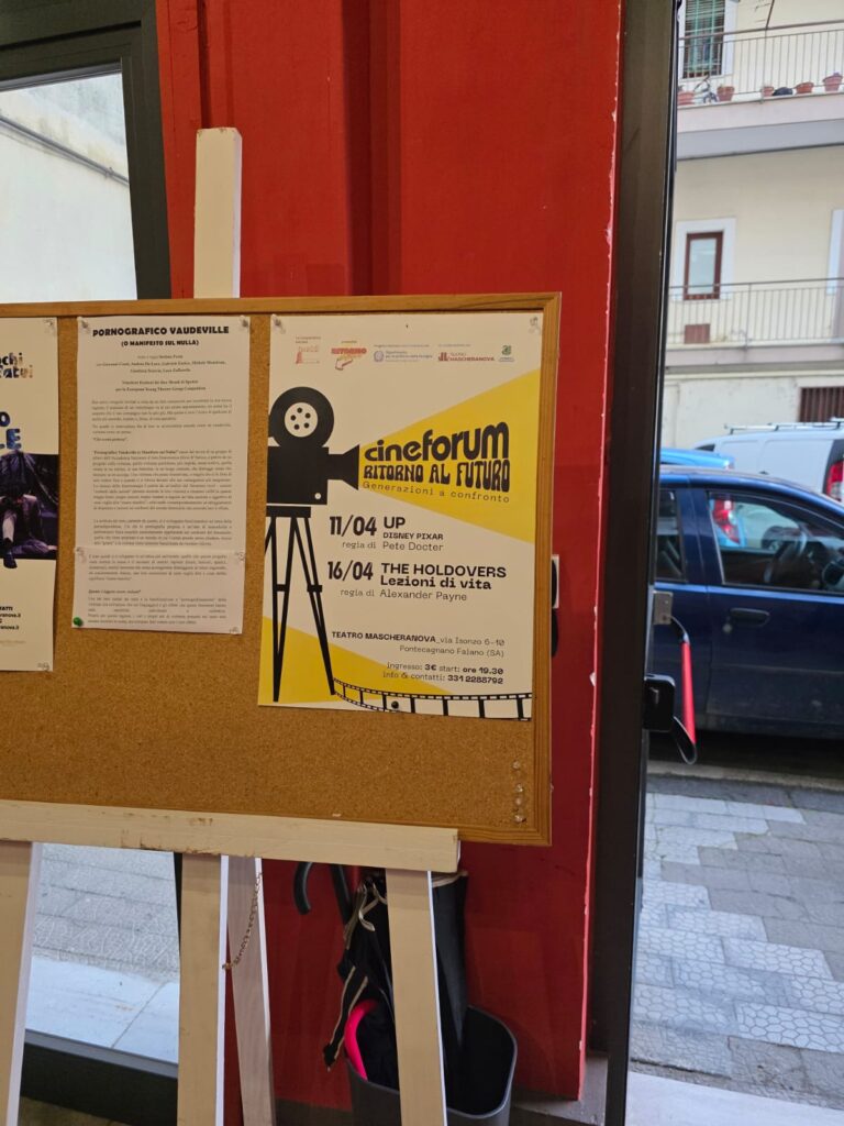 Proiettato il primo dei due film del cineforum ideato dai ragazzi del progetto “Ritorno al Futuro, generazioni a confronto”. La sala del teatro Mascheranova di Pontecagnano ha ospitato il numeroso pubblico che ha aderito all’iniziativa. Prossimo e ultimo appuntamento il 16 aprile con il film Holdovers, lezioni di vita. Di seguito la presentazione e alcune foto della serata.
